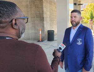 The press conference was held Friday afternoon, Nov. 14, three days after Veterans Day, in front of the Convention Center’s 9/11 memorial on Lincoln Street, one block from the S.C. State House in Columbia’s Vista.